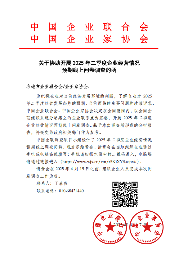 關(guān)于協(xié)助開展 2025 年二季度企業(yè)經(jīng)營情況預(yù)期線上問卷調(diào)查的函